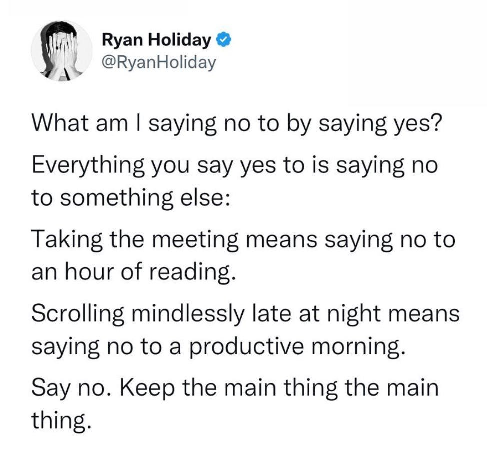 Saying no doesn’t make you a bad person, it doesn’t make you selfish, it doesn’t make you ungrateful for the generosity you’ve received, and it doesn’t shut the door on serendipity and opportunity.