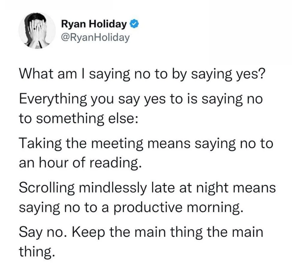 Saying no doesn’t make you a bad person, it doesn’t make you selfish, it doesn’t make you ungrateful for the generosity you’ve received, and it doesn’t shut the door on serendipity and opportunity.